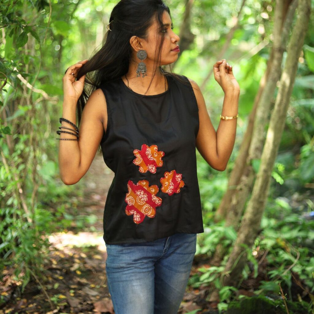 Price range: ₹635.00 through ₹675.00 “inc. GST”Black Kalamkari Printed Cotton Top for Women